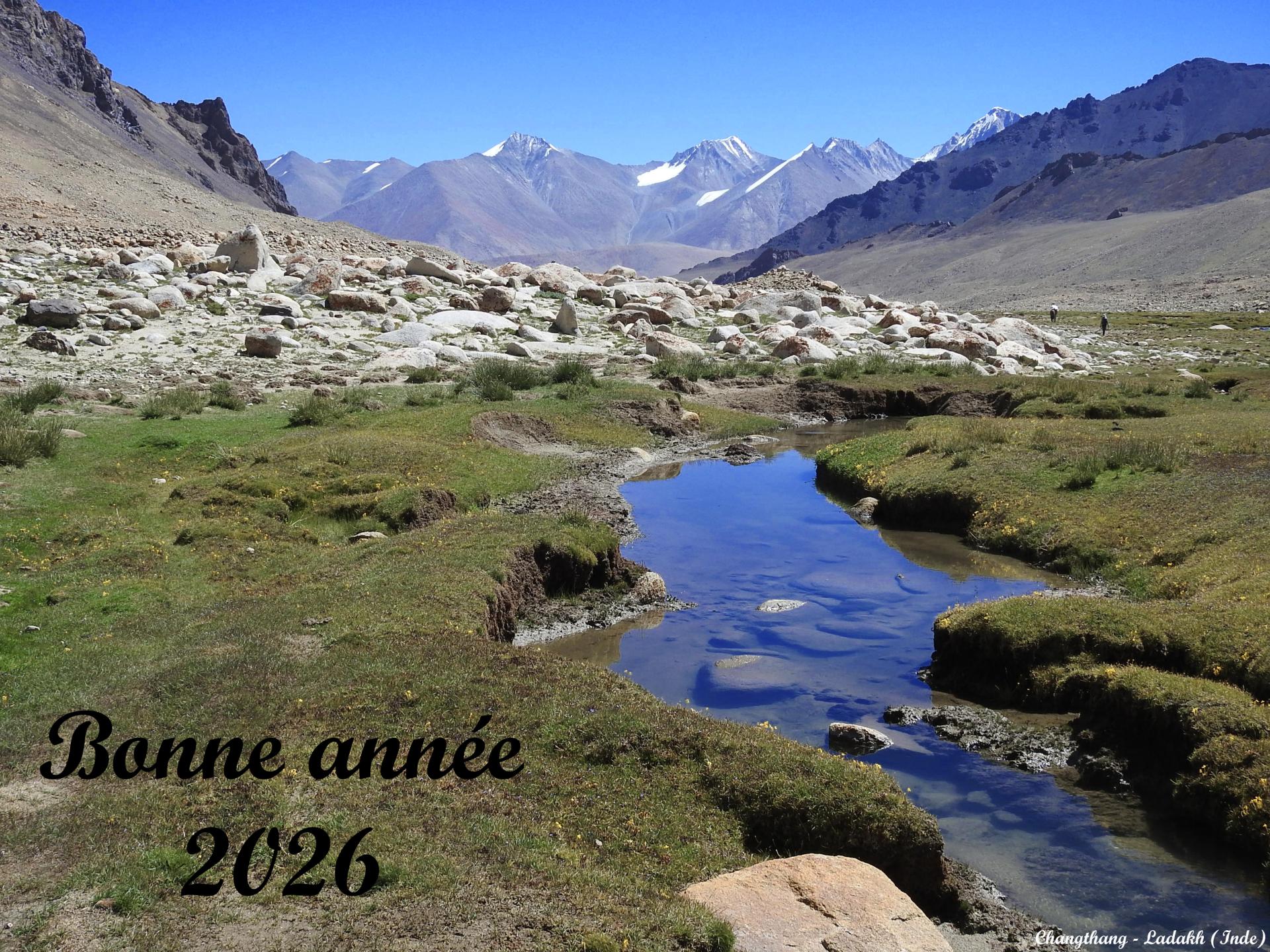 Pour illustrer mes voeux pour la nouvelle année et vous souhaiter de pouvoir réaliser les projets de treks de cette année 2026, retour en photo sur le voyage emblématique de cette été 2025 avec l'Exploration du Changthang indien qui m'a occupé 5 semaines et pour lequel je retiens beaucoup d'excellents souvenirs : certes les paysages, extraordinaires et sauvages comme espéré (c'est un peu pour ça que je courais après la réalisation de ce périple depuis tant d'années, voir la rubrique Explorations en cours...), mais aussi l'implication de tous les instants de l'équipe ladakhie organisée par Sonam Dawa qui nous a accompagnés sur les "chemins" (quand ils existaient...) sans oublier la présence à mes côtés d'un groupe de 3 amis sincères (Philippe, Eric et Xavier) qui ont permis par leur solidarité et leur abnégation de tous les instants que nous passions un excellent séjour d'exploration, justement, ce qui n'est pas toujours aisé en milieu difficile... Le seul bémol du séjour ? Une météo pas au top avec ce méchant retour de mousson depuis les plaines du Rajasthan que nous avons dû subir et qui nous a parfois gâché le plaisir, heureusement pas trop souvent... Cette année, pour moi, re-Ladakh pour "en finir" avec le Changthang (c'est pas vrai ! il y aura toujours quelque chose de nouveau à découvrir là-bas...) et un grand séjour d'automne au Népal dans le massif du Lamjung et du Manaslu avec, en qualité de "cerise sur le gâteau", l'exploration la plus complète possible je l'espère de la vallée de Tsum (voir la marge gauche du site d'ici quelques semaines pour avoir les informations). Bonne année 2026 à toutes et tous !