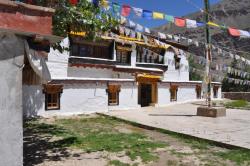 - Pendant ce temps, Sonam essaie de nous trouver une caravane de mules de remplacement sur Leh mais c'est là qu'intervient le deuxième "problème" : le Dalaï Lama a décidé cette année de dispenser son enseignement (la 34e édition de Kalachakra) à Leh... La quasi totalité des habitants du Ladakh et du Zangskar vont converger à pied, à cheval, en bus, en voiture depuis leurs villages jusqu'à Leh pour ne pas rater cet évènement. Et nombreux seront ceux qui habitent Leh et sa banlieue proche qui ne voudront pas risquer de manquer ce rendez-vous du 3 au 14 juillet, quitte à refuser un travail rémunérateur 3 semaines à l'avance. Impossible donc de trouver un muletier bouddhiste sur Leh...! Dire qu'avec Donitchen qui est hindouiste on avait une solution de confort... Enfin, Sonam après moult recherches nous en trouve un : ce brave homme demande simplement d'être de retour à Leh pour le début de Kalachakra. On est le 13 juin, on peut commencer le trek à Kanji presque à l'heure, les mules arriveront par camion "express" à Phu deux jours plus tard, et cela laisse du temps à Donitchen pour nous rejoindre où qu'il soit, quoi qu'il fasse, et bien entendu s'il ne lui est pas arrivé malheur... En attendant le "camion à mules", l'intendance se fera par convoyage automobile. Au fait, le 13 juin, nuit de pleine lune, c'est Purnima à Alchi, la plus grande fête de l'année, fête que nous partagerons sur place avec les pèlerins. Et comme il reste un peu de temps, on va faire un tour aux grottes peintes de Saspol avant de revenir dormir au lodge de Lamayuru. Tout a l'air de bien vouloir se remettre en ordre...