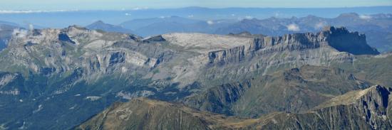 Juin 2017 s2, s3 & s4 : Retour sur l'image de la semaine dernière et l'annonce d'un tour du Pays du Mont-Blanc suivant les crêtes du Cheval-Blanc et des Aravis. (Encore une fois...) patatras ! Constatation faite sur place en début de semaine dernière, il reste beaucoup trop de neige pourrie sur les arêtes et patauger dans la bouillasse pendant des heures n'est pas séduisant. Alors, avec Georges, on va se rabattre sur une première partie panoramique jusqu'aux chalets de la Loriaz, puis tenter de passer par le col de la Terrasse avant de descendre le vallon de Tré-les-Eaux pour rejoindre le lac Blanc par l'aiguillette d'Argentière. Après, on ira faire un tour sur les plateaux d'Anterne, de Sales et de Platé. La fin du programme envisage une descente par la fenêtre de Monthieu puis une dernière journée en apothéose au pied des Aravis du côté du col de Doran. On aura ainsi évité un peu la neige. Maintenant il faut espérer que la météo sera de la partie... La photo de la quinzaine ? C'est la chaîne des Fiz vue depuis le refuge des Cosmiques en septembre 2010 la veille de la grande bambée qui nous a conduite jusqu'à la cime du Mont-Blanc en passant par la voie des 3 Monts blancs (Mont-Blanc du Tacul, Mont-Maudit et Mont-Blanc proprement dit). Que de magnifiques souvenirs !