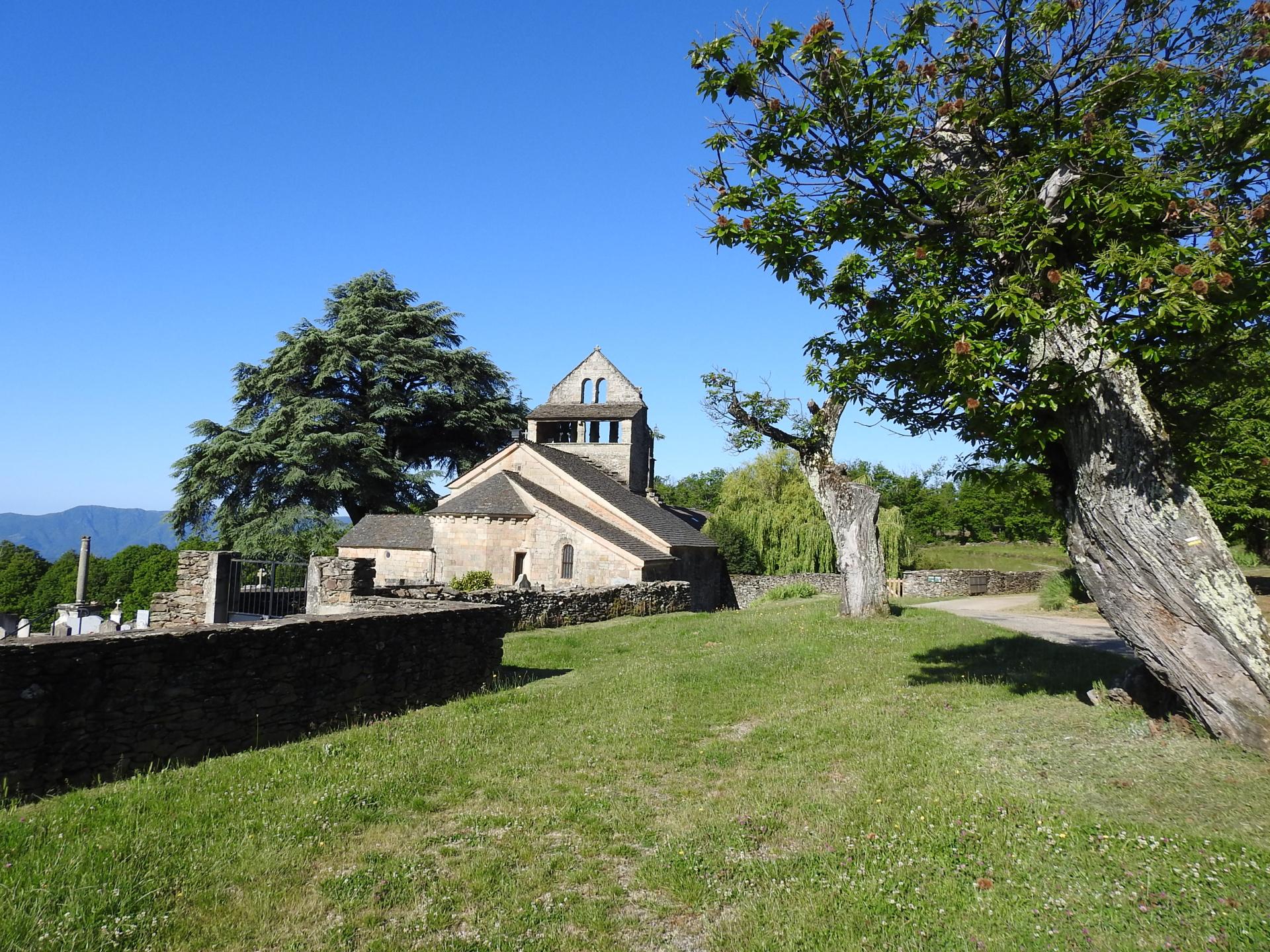 Du parking de l'église romane de Saint-André-Lachamp situé à 695 d'altitude (qu'elle est belle avec son clocher-peigne !), on suit la RD450 vers l'W pour passer devant le poteau indicateur "Les Prés de Lachamp" et suivre le balisage jaune-blanc des PR d'Ardèche. Celui-ci nous invite 50m après le poteau à s'échapper du goudron et suivre à main D une piste caillouteuse jusqu'à atteindre un collet duquel on poursuit tout droit en forte descente sur un large chemin d'exploitation forestière sous les frondaisons des châtaigniers. En bas, après un virage serré à G, on retrouve une autre piste (20mn, 580m) que l'on suit à G en courbe de niveau. Quelques échappées dans le couvert végétal nous permettent de contempler le massif du Tanargue.