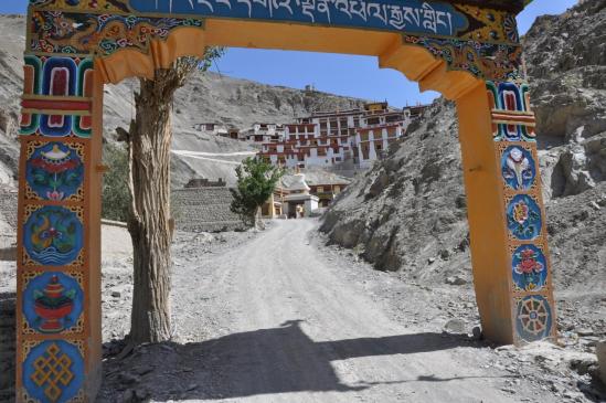 Diaporama De Leh, on prend la route NH-1 en direction de l’W. On suit la vallée de l’Indus puis, après un col, on redescend sur le confluent avec la Tsarap qui vient du Zanskar. Peu après, on traverse le village-rue de Nyemo avant de poursuivre sur Basgo. Passés les quelques lacets de la route qui franchit un épaulement morainique, on tourne sur une petite route à D pour aller traverser le village verdoyant de Likir et au-delà arriver au pied du monastère perché sur son tertre que jouxte un bouddha monumental. Diaporama Visite intéressante de l’ensemble monastique de l’ordre Gelukpa.