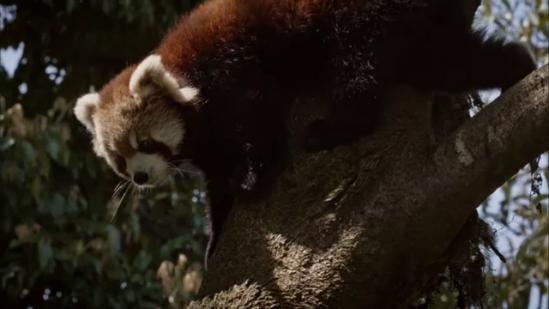 Côté faune, quelques oiseaux mais aussi, beaucoup plus rare, l'occasion de rencontrer le panda roux, une mignonne bébête dont le parc du Kangchenjunga est la zone d'habitat au Népal (ça ressemble à un raton-laveur, et pour la petite histoire, il est intéressant de savoir que Mozilla l'a adopté comme emblème pour son produit phare l'explorateur "Firefox"...). A l'arrière, la vue porte au S jusqu'à Suketar et Taplejung. On commence à apercevoir, sortant de derrière les crêtes rocheuses au NE, des pics glaciaires (Chamlang et Makalu en premier puis sur la G en tout petit Lhotse, Sagarmatha et même le Cho Oyu).