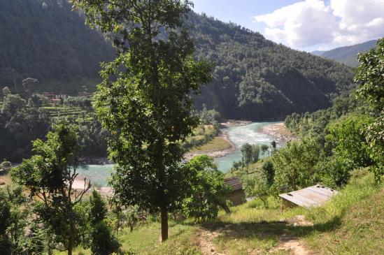 On repart de Koshikhet en traversant champs et forêts jusqu'à rejoindre la Gumu khola que l'on franchit sur une passerelle métallique (1h, 870m, boutiques, lodge). On longe à présent la Tama kosi en RD sur un sentier assez étroit. Très abîmé par un effondrement de terrain en 2014, il n'est pas recommandé de poursuivre en bord de rivière au-delà de la passerelle de Pigati (zone d’éboulements). Il est préférable, même si l'effort est conséquent en fin de journée, de partir à main G sur le petit sentier en zigzags serrés qui remonte de terrasse en terrasse jusqu'à la route (25mn, 1040m, boutiques). Après, c'est descente « en roue libre » pendant 3 à 4kms, non dénués d'intérêt car dominant à belle hauteur la vallée de la Tama kosi avec de belles vues plongeantes, jusqu'à l'entrée de Singati (50mn, 920m, boutiques, banque, transport, lodge en RD de la Singati khola par exemple le Tso Rolpa hotel tel : +977 49690133, T, C, E).