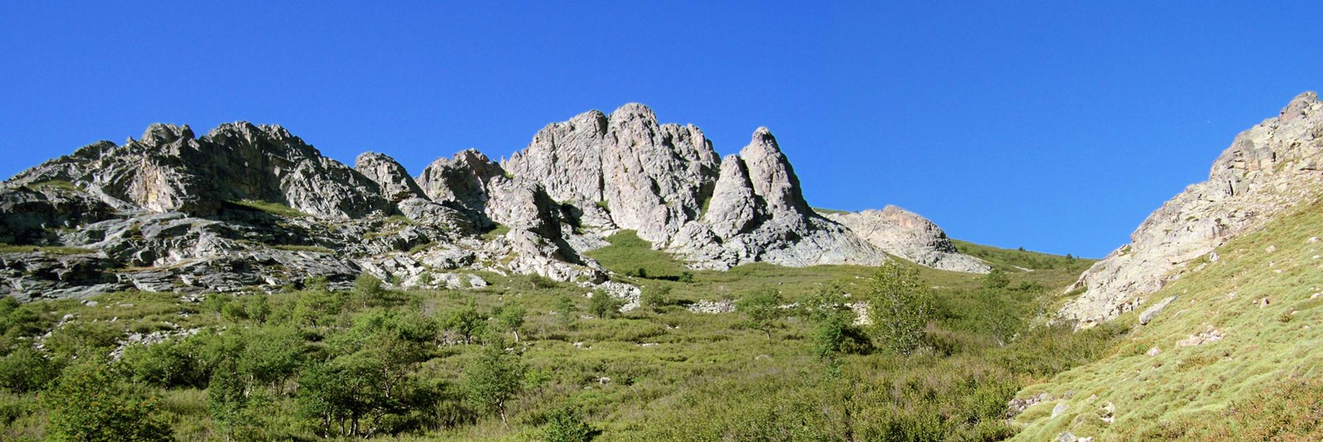 - le Caccia-Ghjunsani, sa multitude de micro-villages immergés dans un océan de verdure et au pied desquels coulent des rivières encaissées, et les aiguilles rocheuses de Popolasca et Rundinaia, initialisation de la Grande Barrière qui barre l’île d’est en ouest.