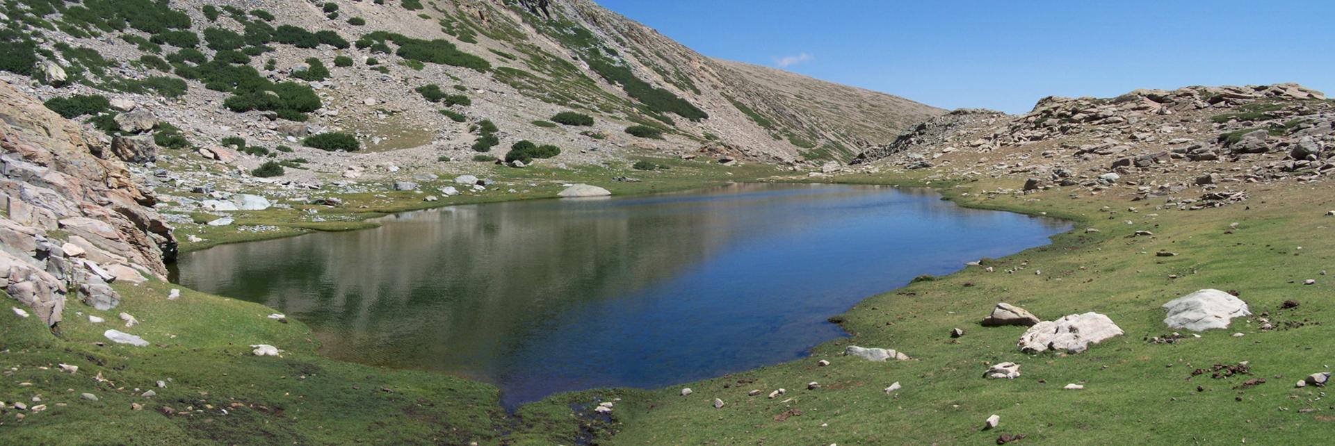 Départ vers le fond de la vallée en suivant les marques blanc-rouges du GR20 direction S. Après avoir dépassé les pylônes de téléski et franchi le sommet de la moraine, prendre sur la D, à l’altitude 1850m, le sentier qui se faufile en zigzags entre la Punta Missoghiu et la Punta Stranciacone pour atteindre un col (1h30) qui donne accès au tout premier tracé du GR20.